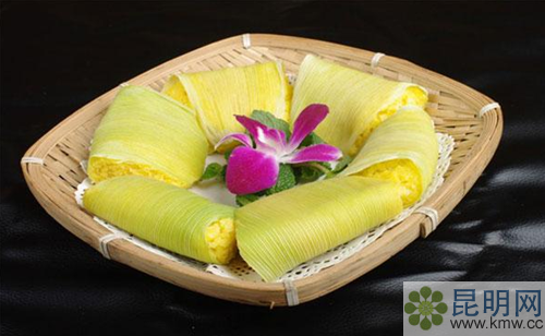 云南玉米叫包谷,包谷粑粑也并不全是包谷做的,是大米、包谷、糯米磨成細(xì)粉之后蒸制而成的,吃起來一點(diǎn)也沒有玉米面的那種隔嗓子的感覺,反而是香糯潤滑,咬一口恨不得把舌頭都咬掉;你挑選好后,賣粑粑的商販會(huì)很體貼的給你包兩片包谷葉子,讓你想聞不到包谷香都難。